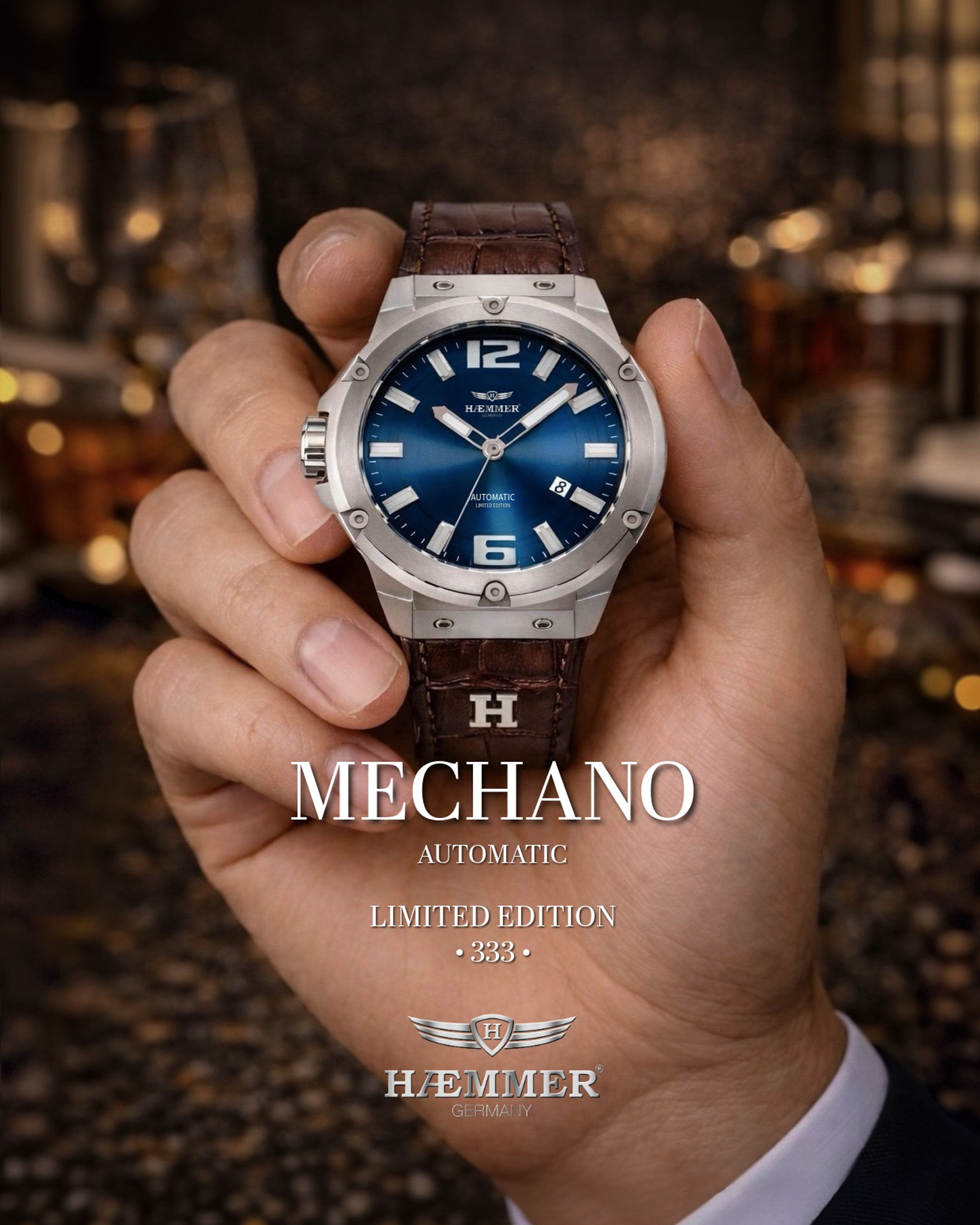 MECHANO ist mehr als eine Uhr. Sie ist Ausdruck seiner Persönlichkeit: selbstbewusst, souverän, authentisch. Sie begleitet ihn bei Momenten, die Entscheidungen verlangen, bei Begegnungen, die Präsenz zeigen, und bei Zeiten, in denen Stil über alles steht.