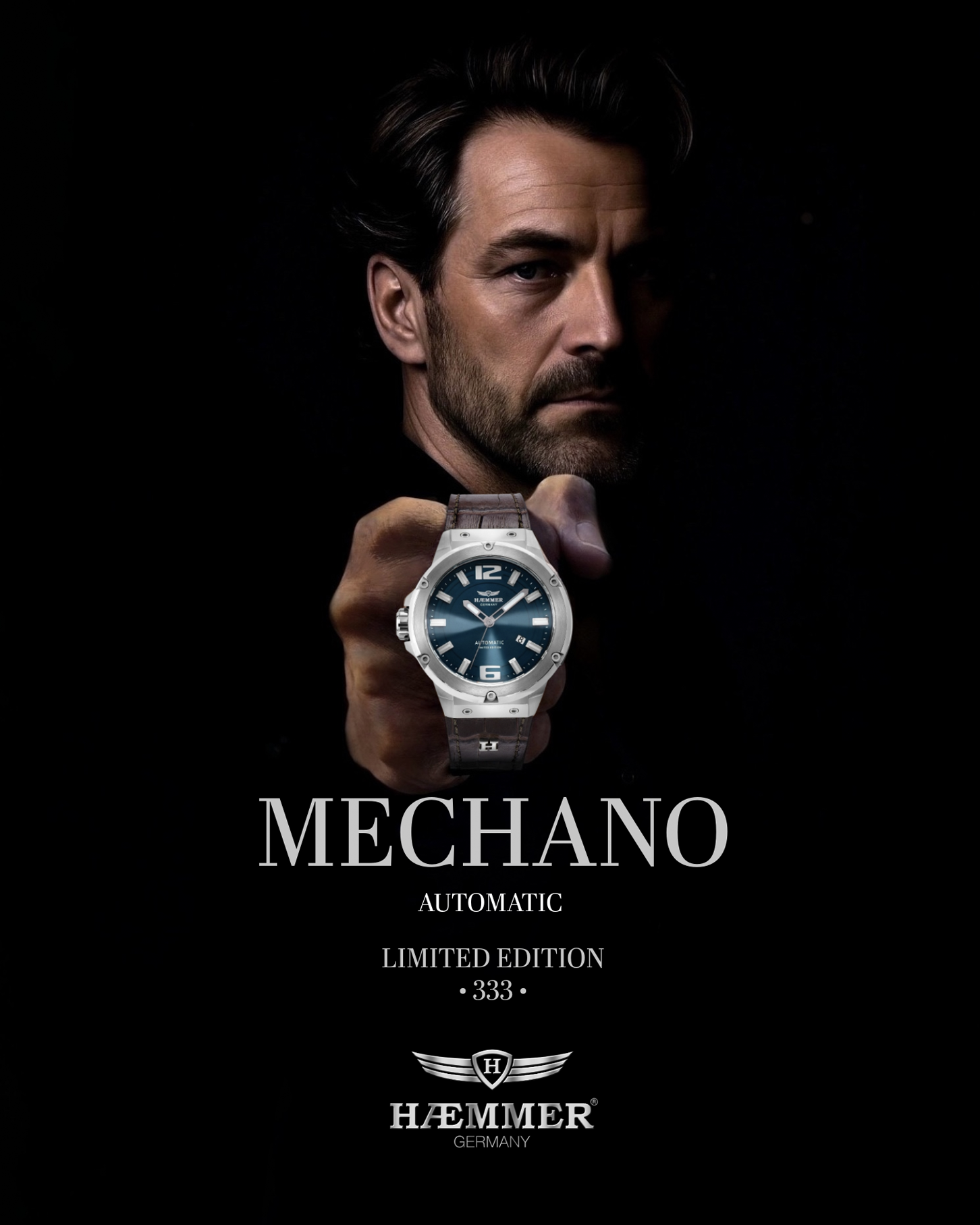 Mit MECAHNO trägt er nicht nur die Zeit – er trägt ein Statement. Eine Uhr, die seinen Lebensstil widerspiegelt: selbstbestimmt, zielgerichtet, charismatisch.