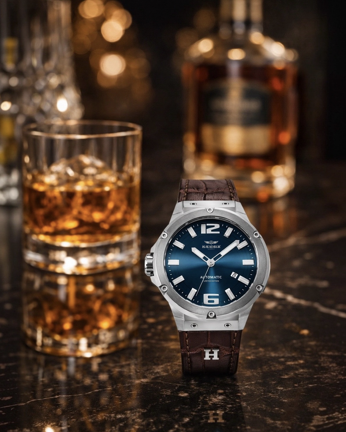 Das markante Gehäuse verleiht BARON eine klare, maskuline Kontur, während das fein ausgearbeitete Zifferblatt Ruhe und Präzision ausstrahlt. Jede Linie folgt einem Zweck, jede Form unterstreicht Charakter. Das Automatikwerk im Inneren arbeitet zuverlässig, beständig und kompromisslos – so wie der Mann, der diese Uhr trägt.