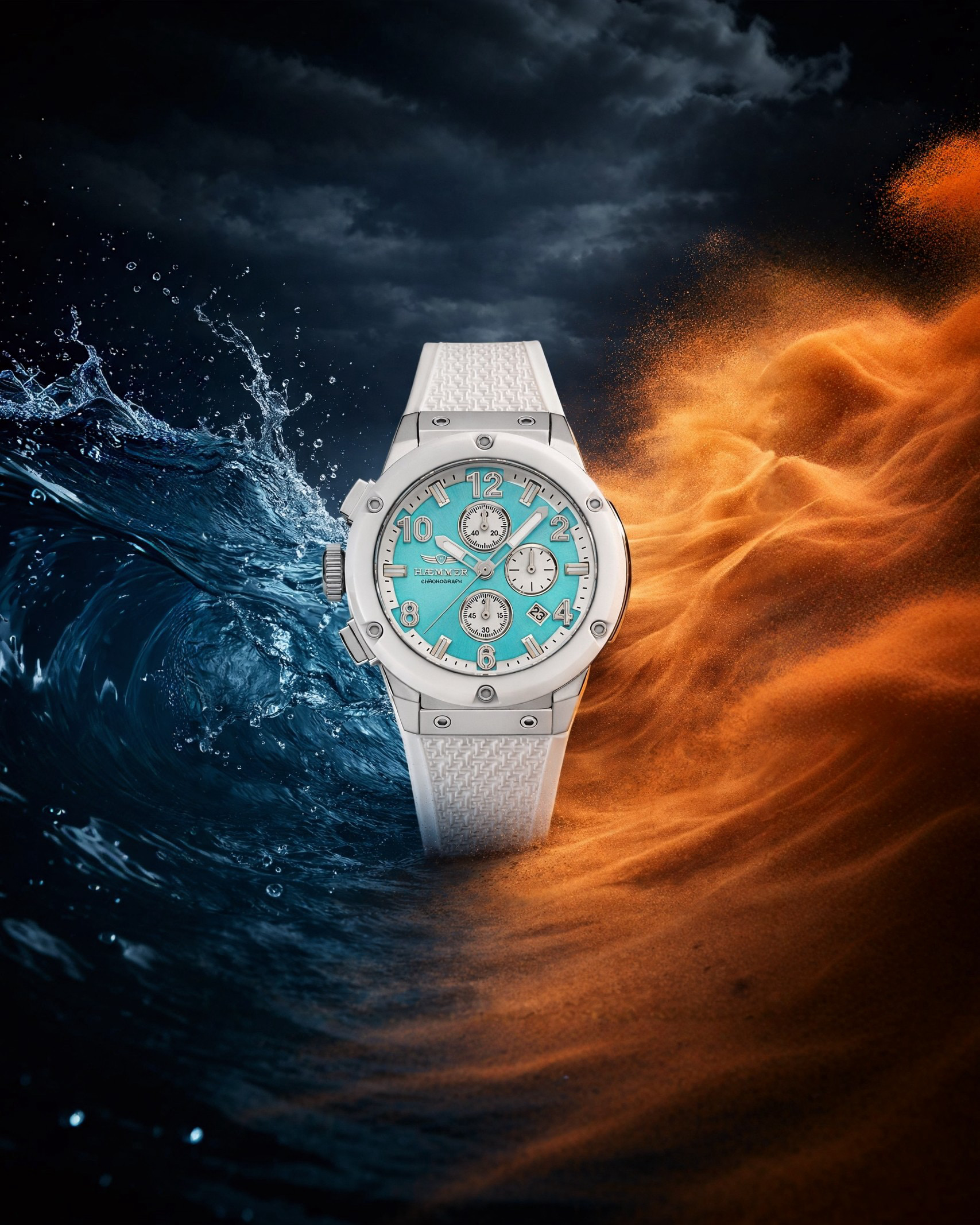 Das Model BeCool bringt eine frische Brise an dein Handgelenk – wie ein Sprung ins kalte Wasser an einem heißen Tag. Ihr frisches Türkis trifft auf strahlendes Weiß – ein Design, das wie ein kühler Sommerdrink in der Sonne wirkt. Elegant und gleichzeitig lässig.