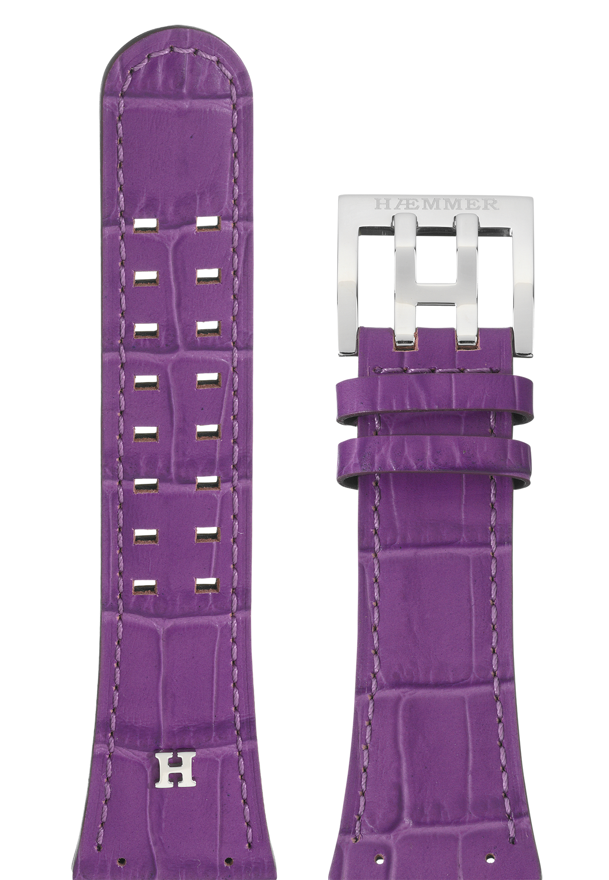 | Armband & Schließe: | Krokogeprägtes Kalbsleder-Armband, aus poliertem 316L Edelstahl, mit Doppeldornschließe |