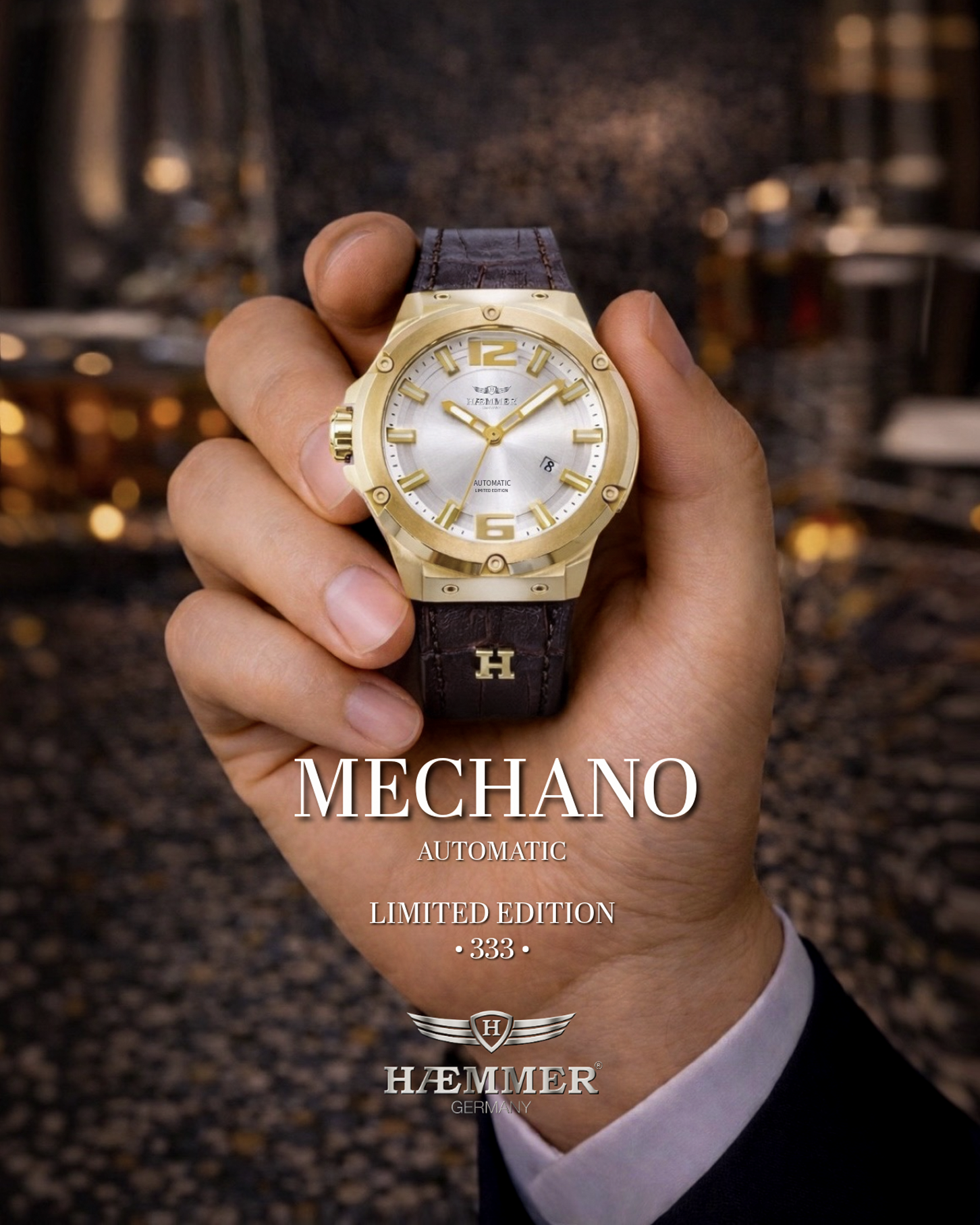 Mit MECAHNO trägt er nicht nur die Zeit – er trägt ein Statement. Eine Uhr, die seinen Lebensstil widerspiegelt: selbstbestimmt, zielgerichtet, charismatisch.