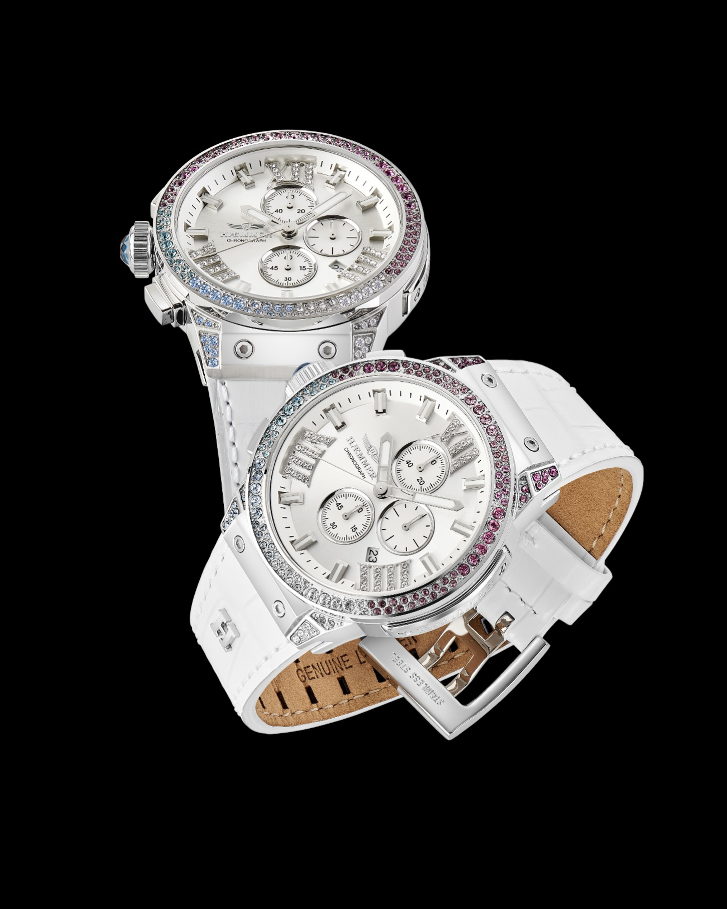 Der diamantartige Glanz, die sorgfältig gesetzten Akzente in Rosé, Pink und Eisblau und das makellose Weiß schaffen ein Gesamtbild, das Modernität und Eleganz meisterhaft verbindet.