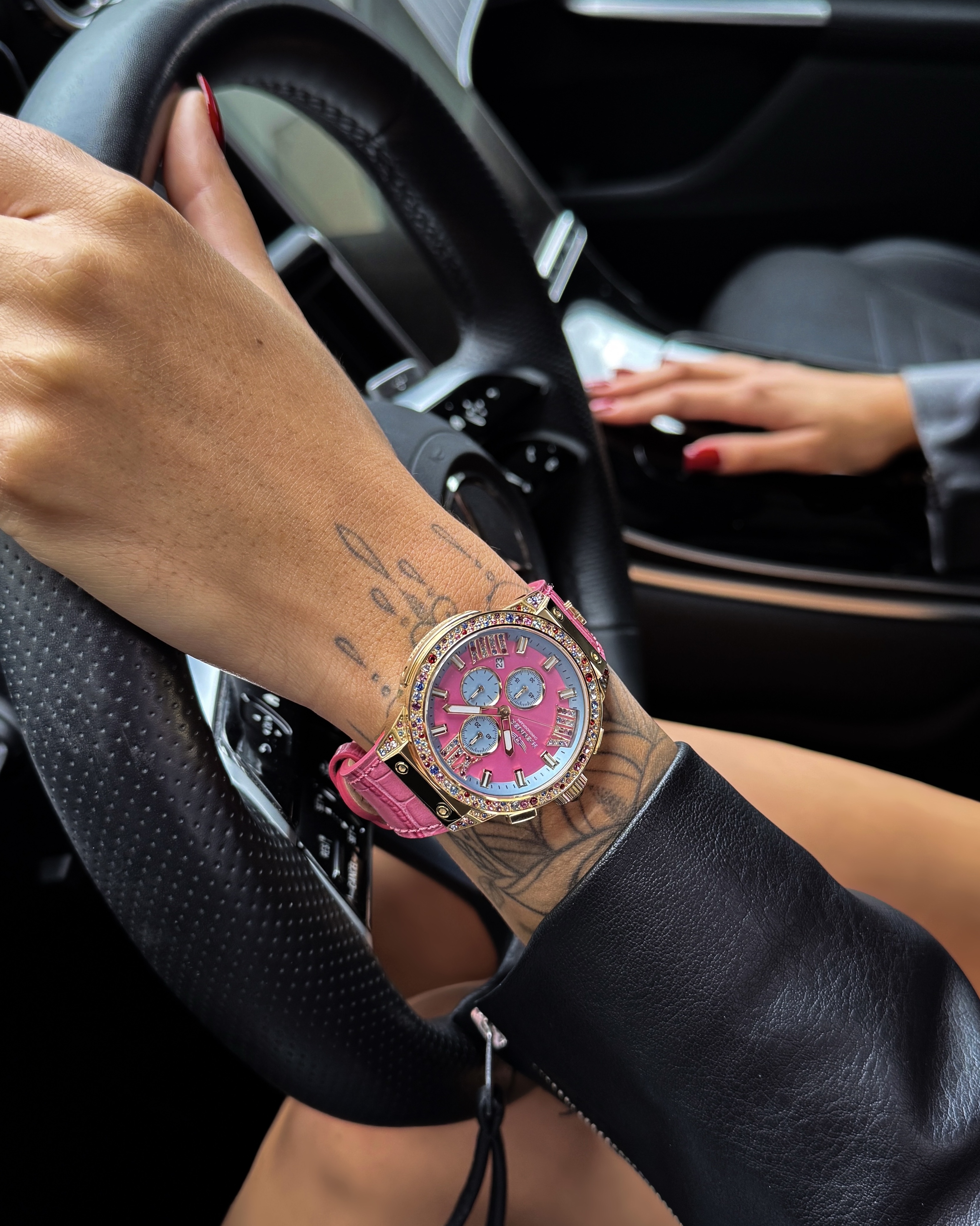 Das kraftvolle Pink trifft auf goldene Eleganz – mutig, sinnlich, einzigartig.