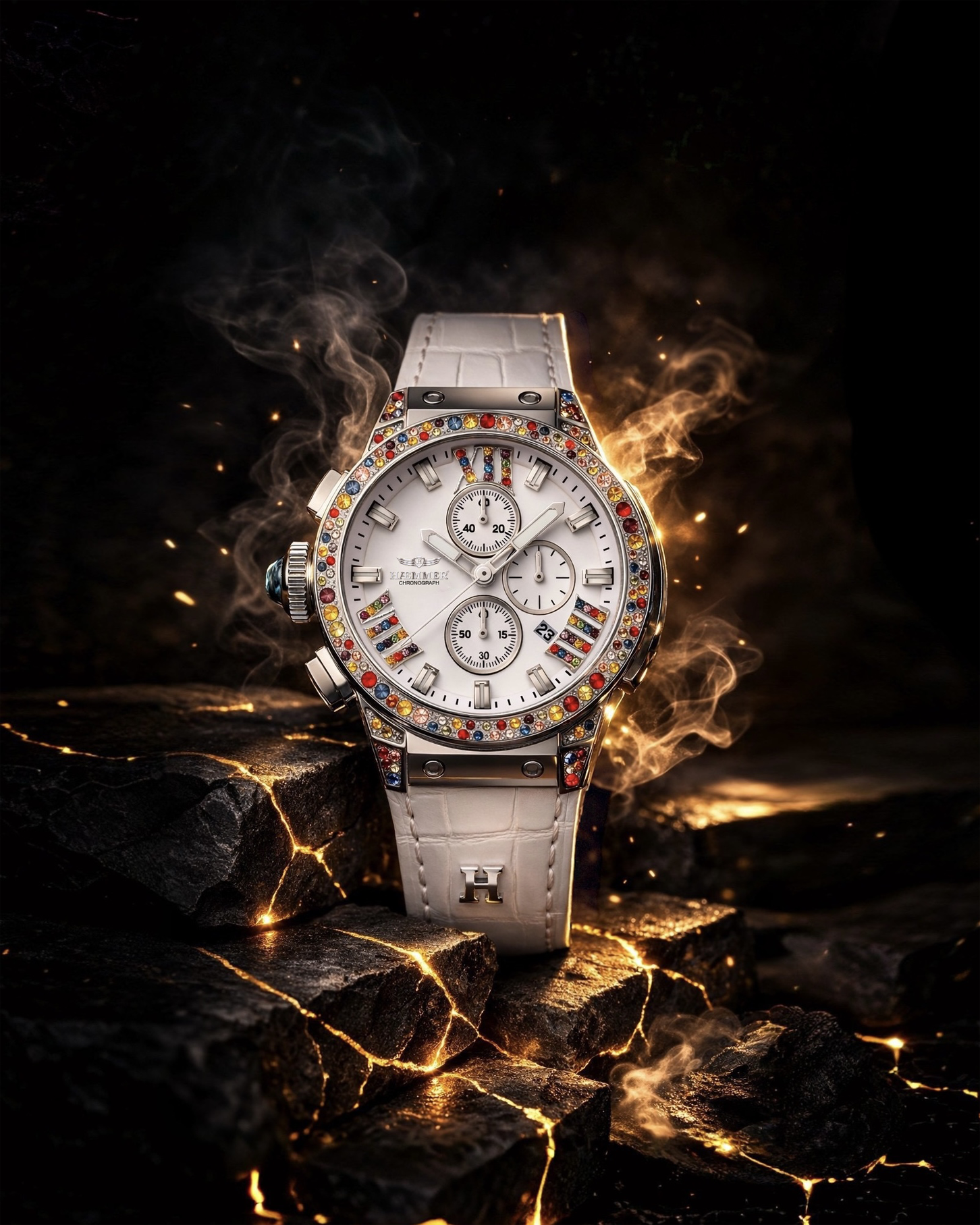 Mit leuchtenden Farben und funkelnden Akzenten ist sie kein ein normaler Zeitmesser und vor