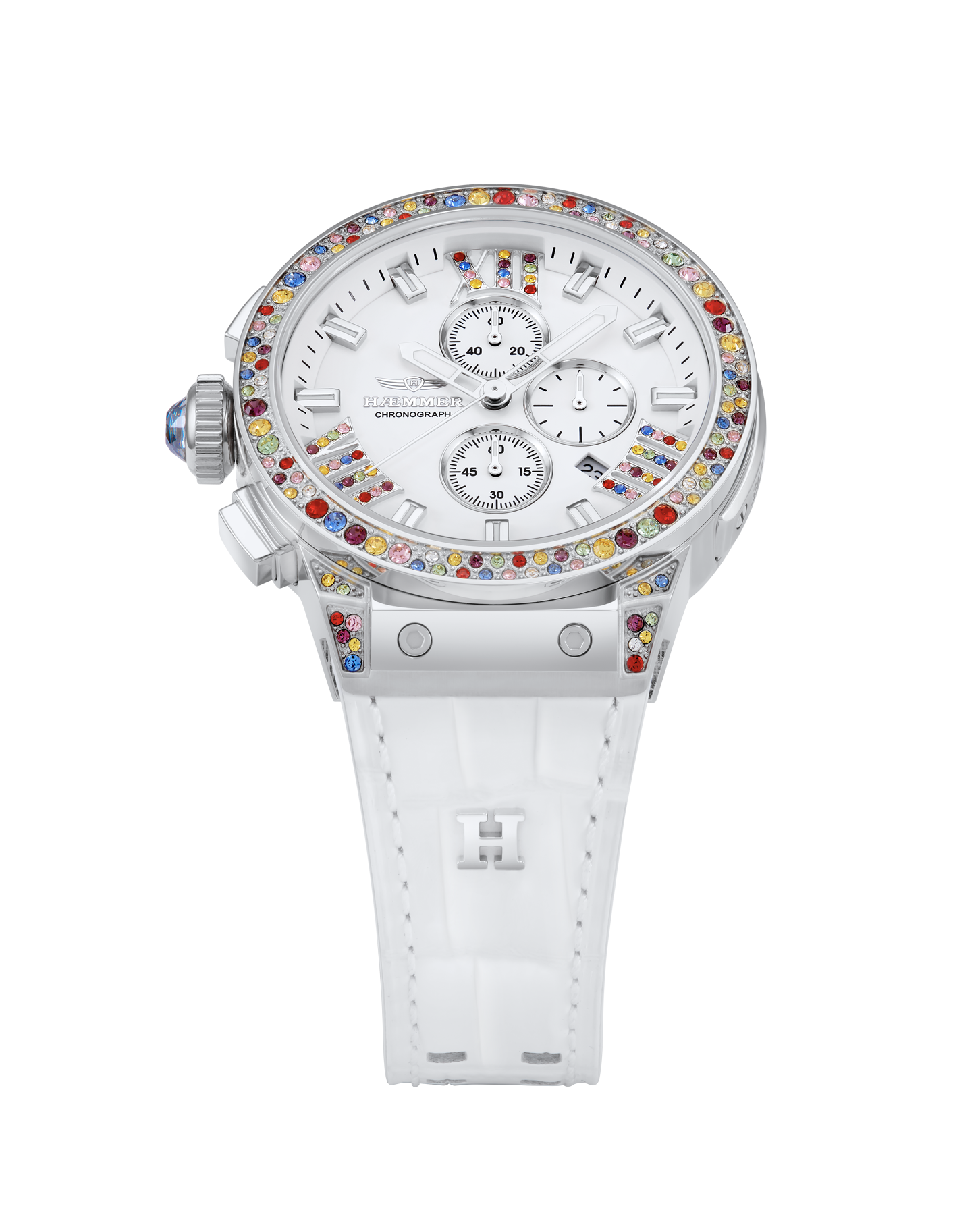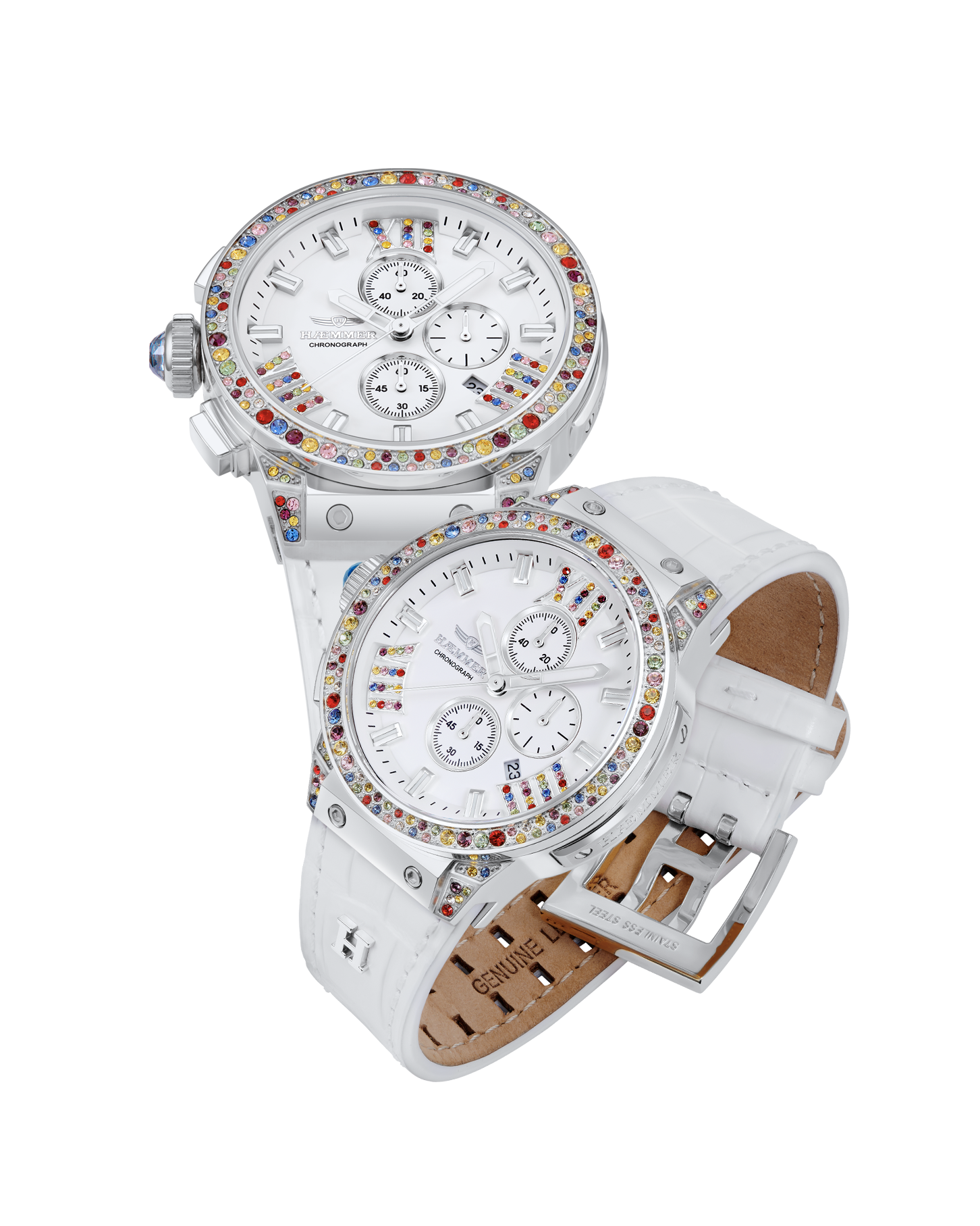 | Stellkrone: | Linksseitig verschraubt, mit eingearbeitetem Swarovski-Kristall |