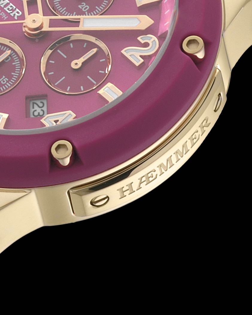 | Edelstahlelemente: | "HÆMMER" Lasergravur auf poliertem 316L Edelstahl, Beschichtung: IP-Gold |