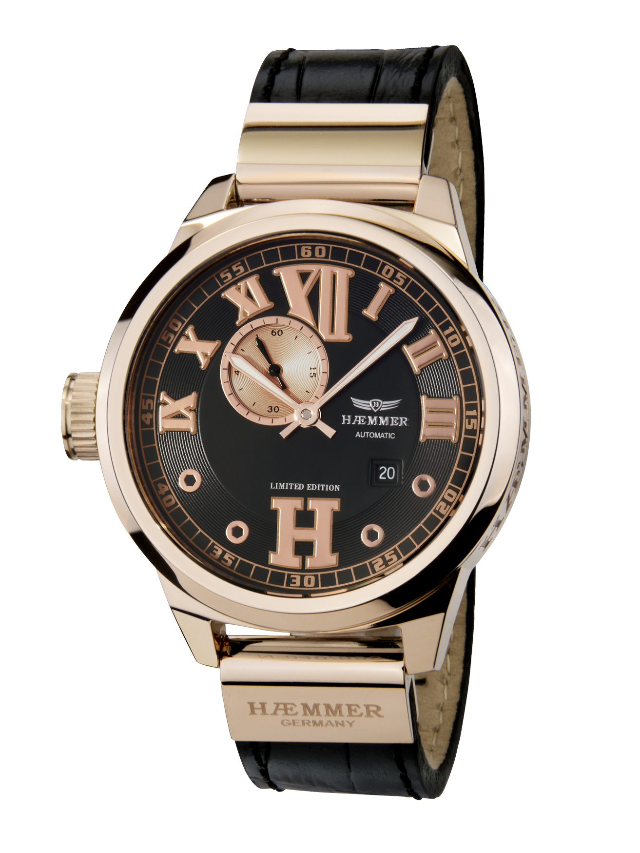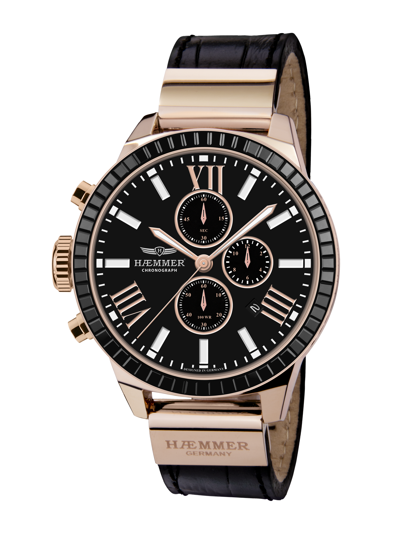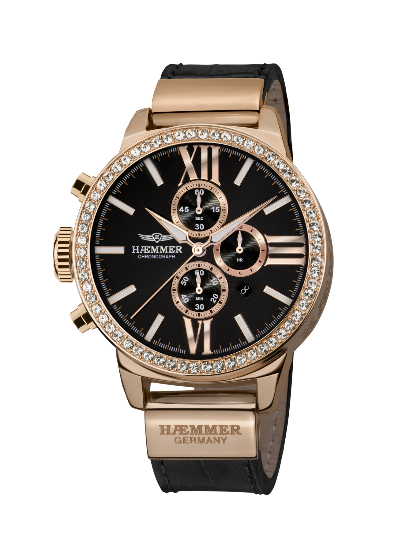 | Armband & Schließe: | IP-Rósegold beschichtet, Krokogeprägtes Kalbsleder-Armband, aus poliertem 316L Edelstahl, mit Doppeldornschließe |