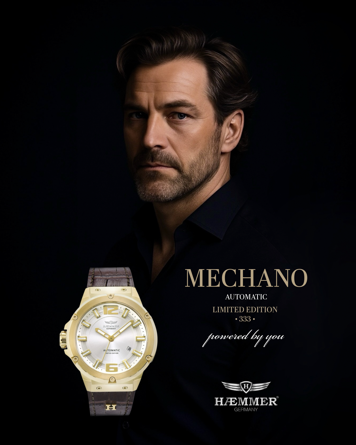 Mit MECAHNO trägt er nicht nur die Zeit – er trägt ein Statement. Eine Uhr, die seinen Lebensstil widerspiegelt: selbstbestimmt, zielgerichtet, charismatisch.