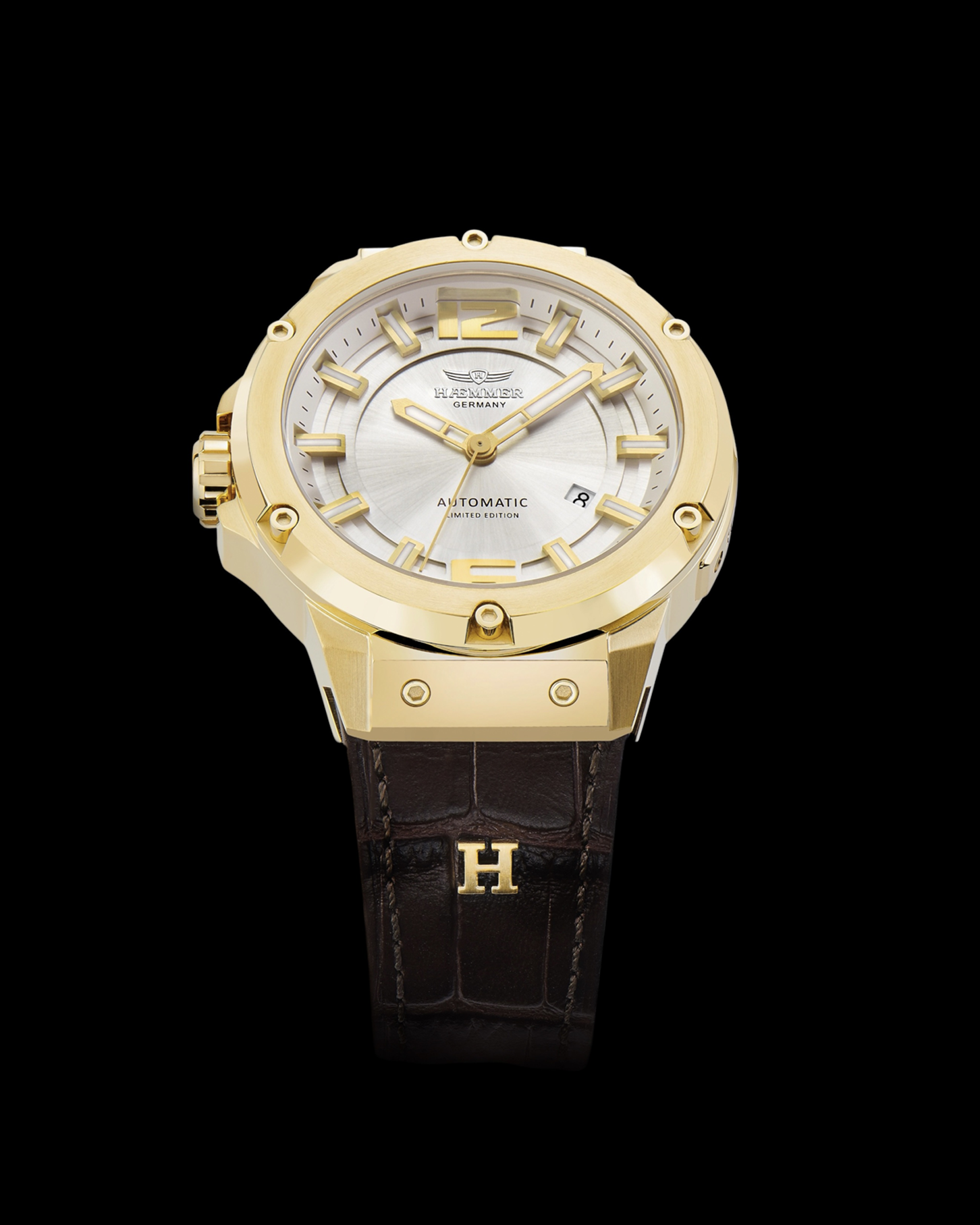 Das kraftvolle Gehäuse trifft auf eine ausgewogene Linienführung, das fein strukturierte Zifferblatt auf präzise Mechanik. Jede Bewegung des Automatikwerks erinnert daran, dass wahre Beständigkeit nicht stillsteht, sondern sich stetig weiterentwickelt.