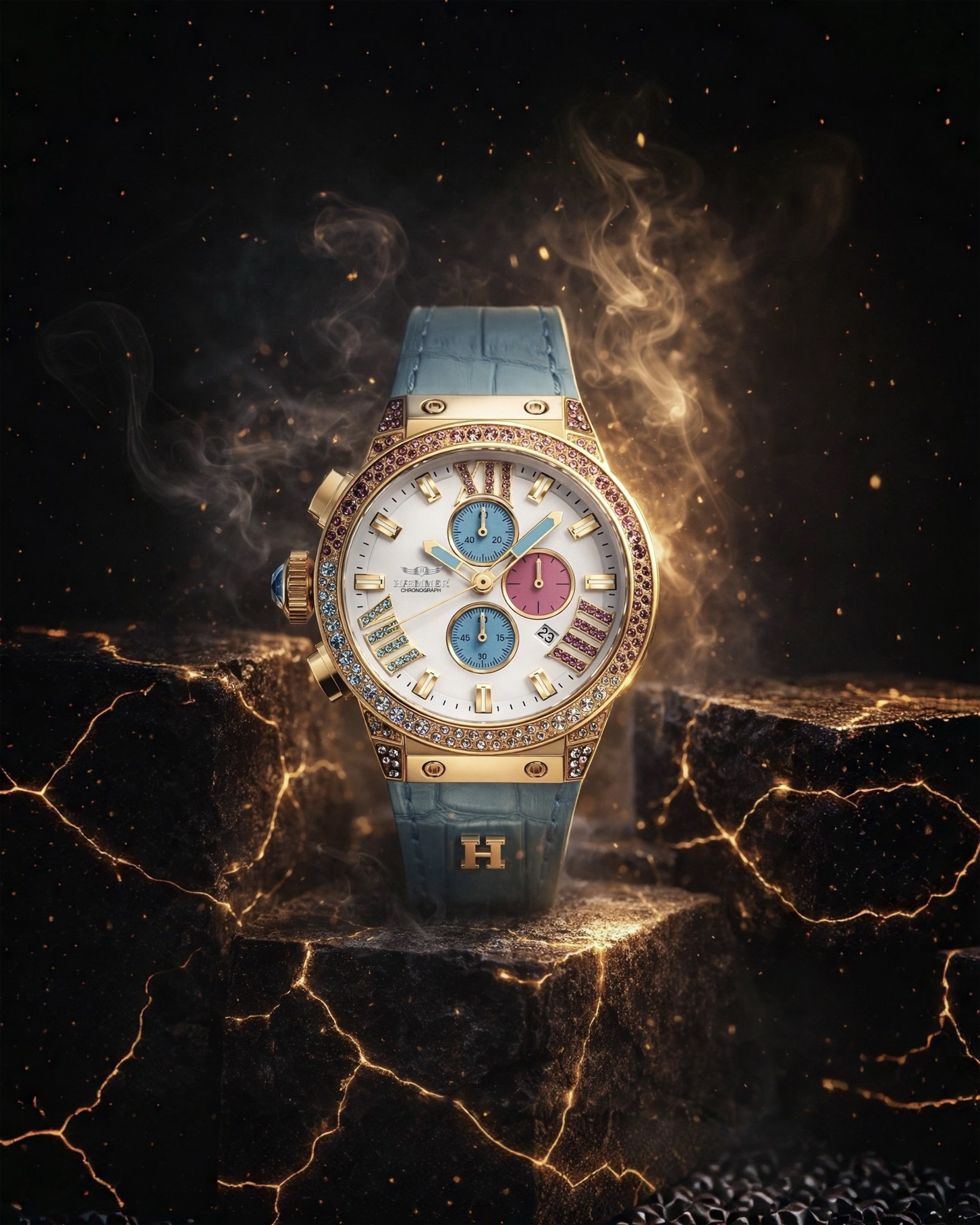Mit leuchtenden Farben und funkelnden Akzenten ist sie kein ein normaler Zeitmesser und vor
