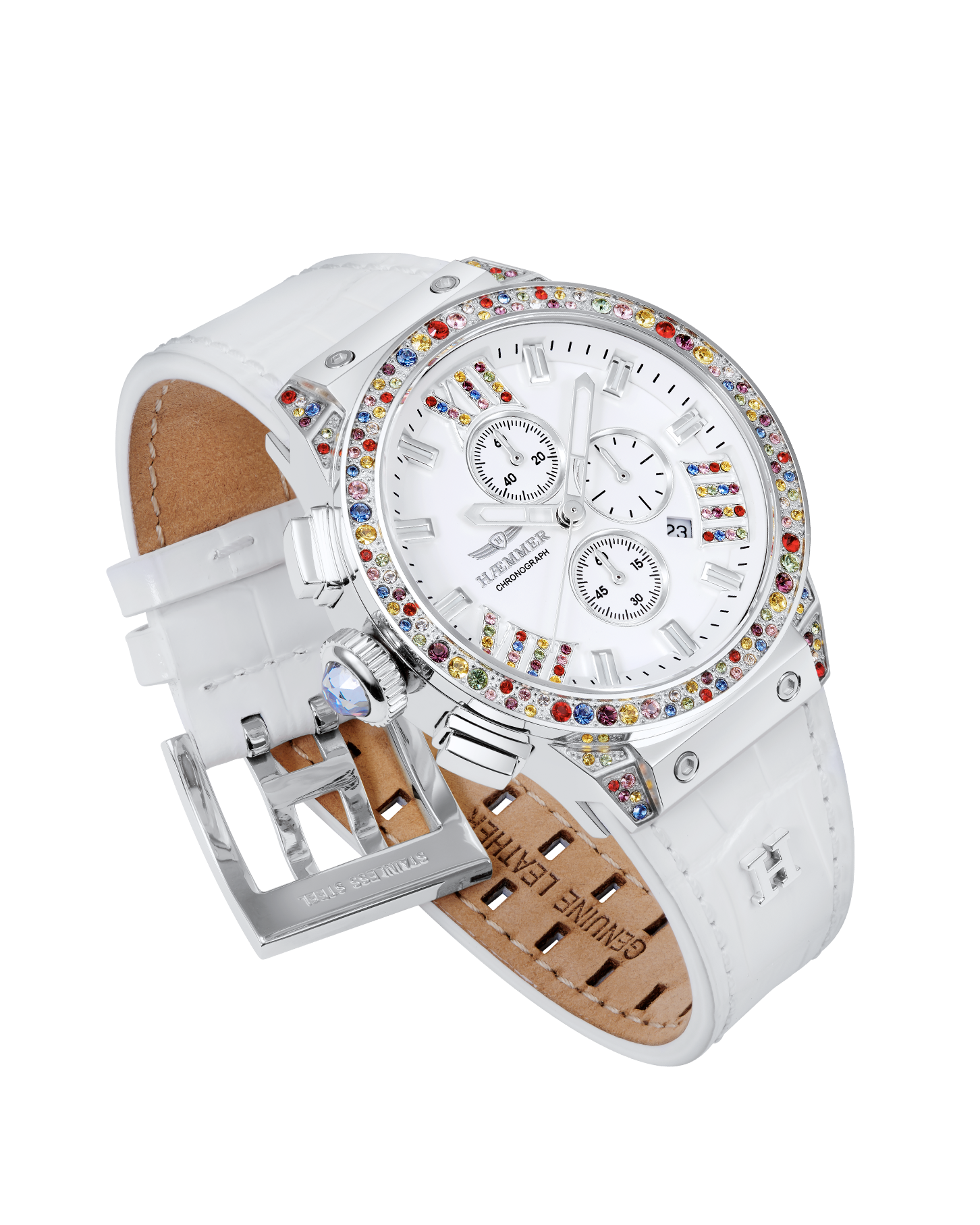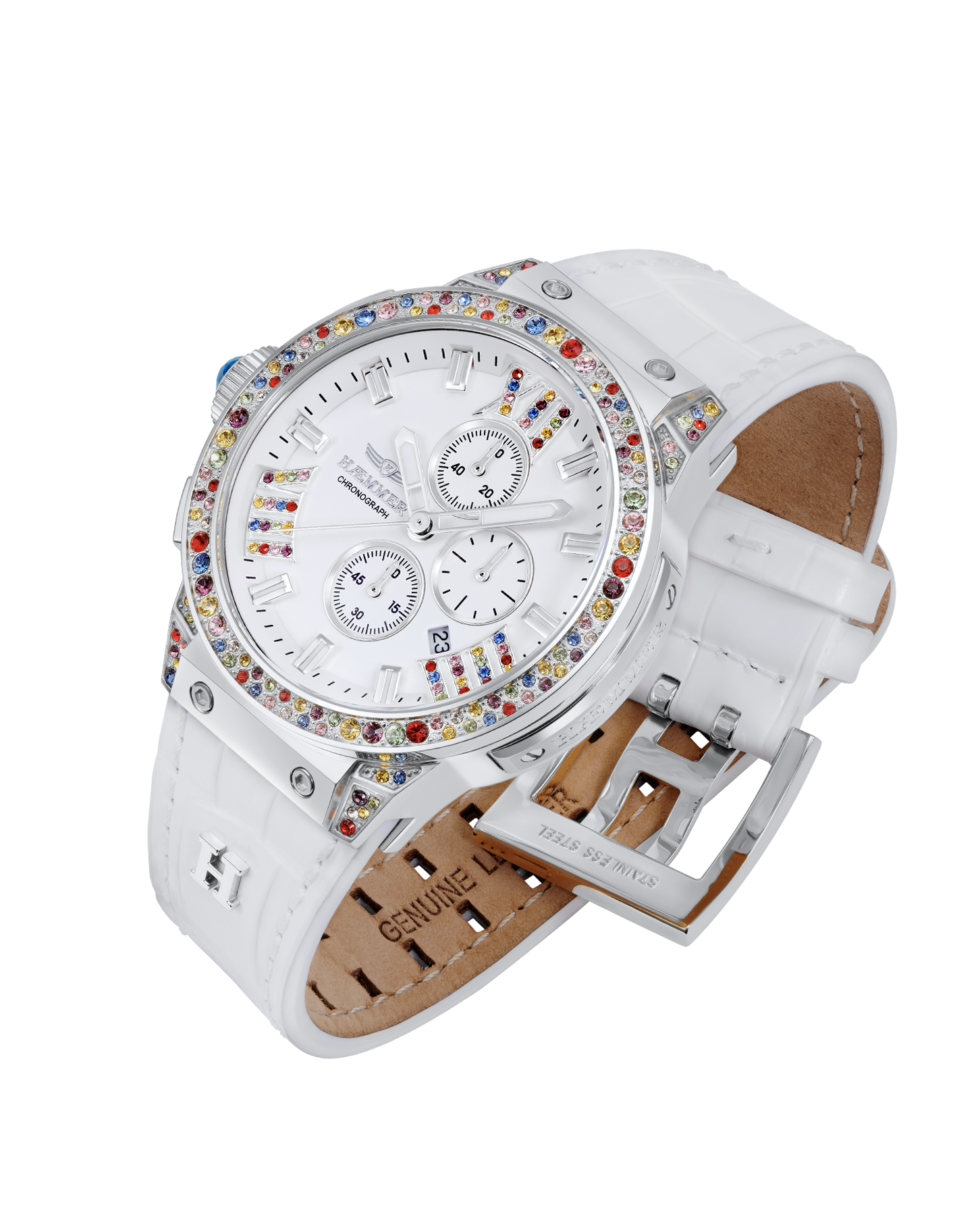 weil wahre Stärke auch in den Details steckt, trägt jede HÆMMER die Krone auf der linken Seite – dies sorgt nicht nur für einen außergewöhnlichen Look, sondern auch für maximalen Tragekomfort am Handgelenk, den du nicht mehr missen willst.